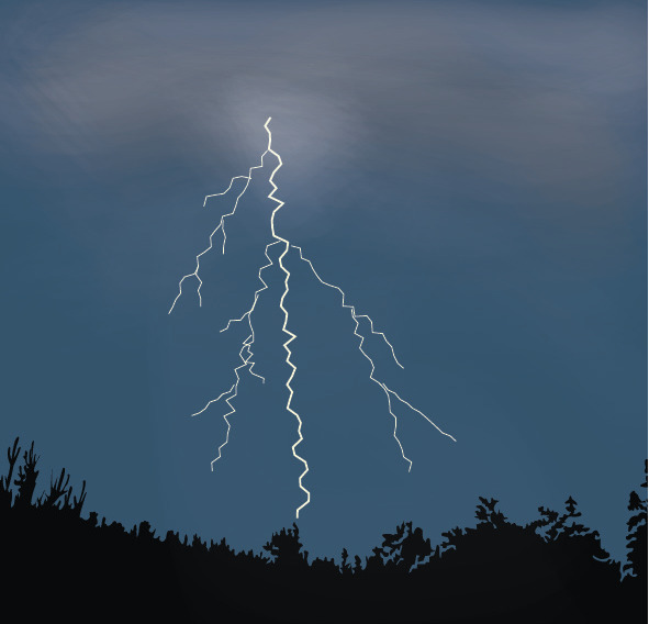 И вот появилась молния… Но она была в этот раз слабенькой и тоненькой, а не такой мощной, как ожидали деревья. Все они обрадовались и удивились.