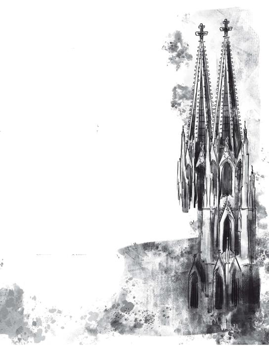 Соборы, с высоты распятые крестом.Худые, и скелет их оголён.Им аркбутаны – рёбра, позвонки – колонны.Нервюры – кости стрельчатого свода.Химеры и гаргульи – над головой кругом.Розы – витражи замысловатой красоты.О! Как пестры они, как калейдоскоп пестры!Пучками свет через мозаичные стёкла льётся тускло,Храня прохладу в сумеречной тишине.Алтарь же озаряет он торжественно и густо,Ансамблем окон по апсидной стене.Фасады выступают статуями королей, апостолов, святых.И, делом грешным, хочется химерой затесаться среди них.Чтоб каждый дюйм собора денно-нощно созерцать.Ведь жизни человеческой не хватит всё объять!По нефу ли центральному пройти?Чрез колоннаду стопятидесятиметровой высоты.И прямо к алтарю.Ступня́ми ощущая низменность свою.От величавости, громадности так и спирает дух.Витает ладан в воздухе – и мир мирской потух.Что-то дышаться стало спёрто вдруг…Всё-же какой красивый этот сокровенный свет.В гулкой тишине собора дашь согрешить – обет.Шпили острые и башни небо протыкают.Прямо в Бога радостного попадают.Его уж, несомненно, поразили красотой.Но только, к сожалению, не той.Каменные ангелы, Иисус и Страшный суд.Нету Бога – нету, нету тут!Храмы культами придуманными начинили.Тысячи невинных – именем Его – убили!Ах, они, великие соборы.Больных и немощных всех подобрали.Их папы, по церковному закону,Людей осознанных кострищам предавали.На лбах своих же начертили жирный крест.Не давши Истине свершиться в Тёмный век.Костры потухли уж давно, развеян дым в умах.Публично извинились папы за жестокий мрак.Имя Церкви убелено и вновь неприкосновенно.«Спасибо!» – от чела пятидесяти тысяч жертв им, непременно!Истина закопана во мраке стрельчатого свода.По сей же день они столь далеки от Бога.Но сердце, знаю, с ужасом, – одно,Кёльнскому собору отдано!