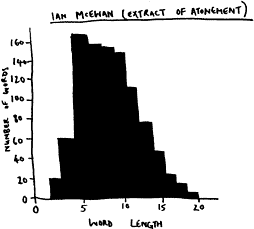 For comparison, here is the ‘fingerprint’ of the writer Ian McEwan, showing that his vocabulary includes many shorter words:
