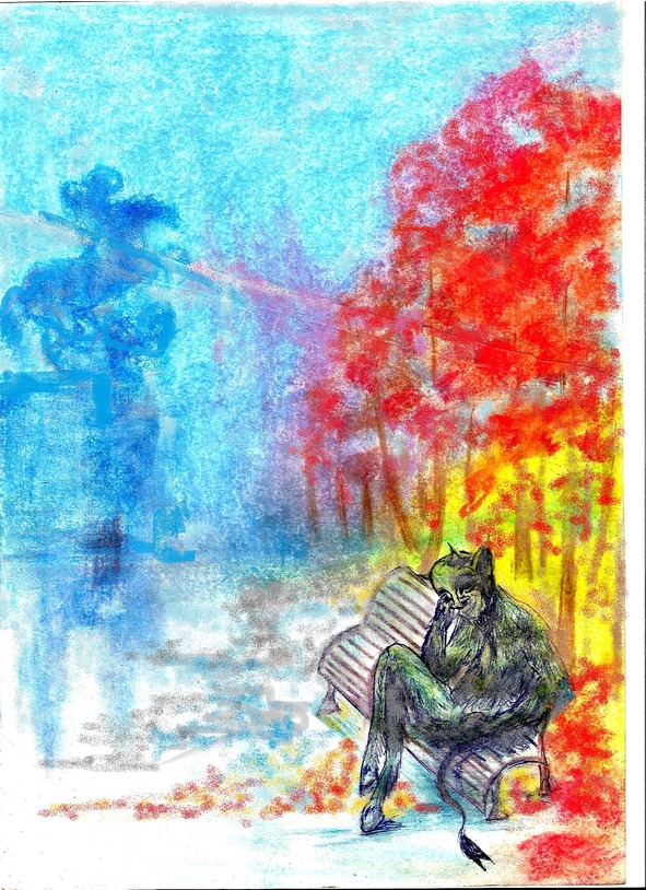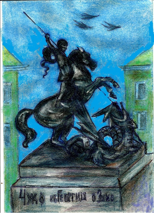 Но мы немного отвлеклись. Итак, в этот чудесный предпраздничный день прекрасное настроение Казимира неожиданно было изрядно подпорчено! И чем?! Кто бы мог подумать?! А вот послушайте, чем! В преддверии праздника на Кировку привезли и начали устанавливать новую чугунную статую. Бес эти скультптуры любил, – и Кокетку перед зеркалом, и Городского нищего, и пролётку – в которой извозчиком мог быть любой желающий, и Уличного музыканта, и Левшу, и сурового Городового, и всех других, которые украшали собой любимую улицу всех горожан. А уж праздных зевак бес и вовсе любил беззаветно, – таких всегда легче подталкивать к перебранкам, карманным кражам и прочим непотребным делам! Поэтому бес приостановился и с любопытством стал смотреть, – а что же будет там на этот раз? Он любил новизну! Вокруг собралась толпа любопытных прохожих, и все с интересом и ожиданием смотрели на происходящее. Пока ещё скульптура была укрыта плотным тёмным покрывалом. И всё бы было прекрасно… Но когда под бравурные звуки бодрого марша с неё торжественно сдёрнули чехол, – бес громко завыл и чуть в обморок не упал! На высоком пьедестале было нечто совершенно невообразимое: на могучем жеребце гордо красовался непобедимый Георгий Победоносец и протыкал копьём Змия, – его, беса, лучшего друга! Такого оскорбления, да ещё нанесённого столь публично, Казимир вынести не мог. Да ещё и бестолковая толпа аплодировала от восторга! И видеть это нервному впечатлительному бесу – было просто невыносимо! Глядя на всех этих жалких людишек, он прямо зубами заскрипел от злости! А уж зубы у него были, поверьте, – не хилые… А людям показалось, что где-то на отдалённой улице поезжает огромный КАМАЗ, гружёный железными листами, которые противно дребезжат и грохочут от тряски, да ещё, кажется, и падают на дорогу, отвратительно скрежеща на всю округу!