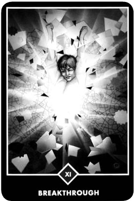 XI Аркан колоды Ошо Дзен Таро именуется Прорыв. В сравнении с традиционным названием карты (Сила) в Прорыве благодаря композиционным решениям и активной световой фактуре явственно чувствуются обостренная экспрессивность и динамика.