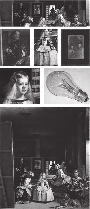 И может показаться, что в этом и был его расчет, что он написал такую непривычную картину, стоя в которой он изображает на картине вас – зрителя. Ну оригинально, скажем, поменял порядок вещей: сам он, художник, – на холсте, а вы – натурщик, но не изображенный, а разглядываемый им с холста и при этом живой. Но это еще не все. Вся фишка в том, что он не вас разглядывает, а королевскую чету, которую он в это же самое время и изображает на своей повернутой к нему огромной картине. А понятным это становится, потому что они – король и королева – отражаются в зеркале за его спиной. Зеркало довольно-таки далеко, и не сразу видишь, что это – зеркало и что в нем изображение тех, кого он сейчас пишет, но постепенно об этом догадываешься, особенно если посмотришь подольше. Поэтому там, где стоите вы, на самом деле стоят король и королева. То есть, с одной стороны, стоя перед картиной, вы автоматически превращаетесь в короля и королеву, в ту самую пару, которую разглядывает художник, а с другой – непонятно, видит ли он на самом деле только короля и королеву, а вас не замечает, или он и вас к тому же видит. А если он и вас видит, то тогда это место, где вы стоите, обладает магическим свойством содержать в себе массу вещей – вас, короля, королеву и взгляд самого художника, в вас троих уткнувшийся. Причем возникает еще один вопрос: если он пишет то место, где все вы собрались, то, значит, на картине, которую он пишет, должно быть и ваше изображение. И не только ваше, а любого, кто станет эту картину рассматривать, – всех зрителей, которые когда-либо на нее посмотрели хоть раз. Проще говоря, в возможности, – всех людей мира. Это место, которое он изображает – заключило в себе всех людей мира. Но, в отличие от короля и королевы, в зеркале их не видно, потому что их видит только сам художник, ну и еще те, кто изнутри картины посмотрит на картину внутри картины – ту, которая повернута изображением не к вам, а к художнику. То есть, я хочу сказать, что это не совсем физическое измерение – то место, где все мы с вами, зрителями, стоим. Хотя бы потому, что в этом месте может уместиться хоть миллион человек, хоть миллиард – это неважно, какое количество – можно приписывать нули до бесконечности. Я все это не из головы сочинила, а однажды просто увидела. Отец считает, что я вундеркинд и математический гений, но, честно говоря, у меня с математикой нелады, просто некоторые вещи надо увидеть, вот и все. Для этого не нужно быть гением.