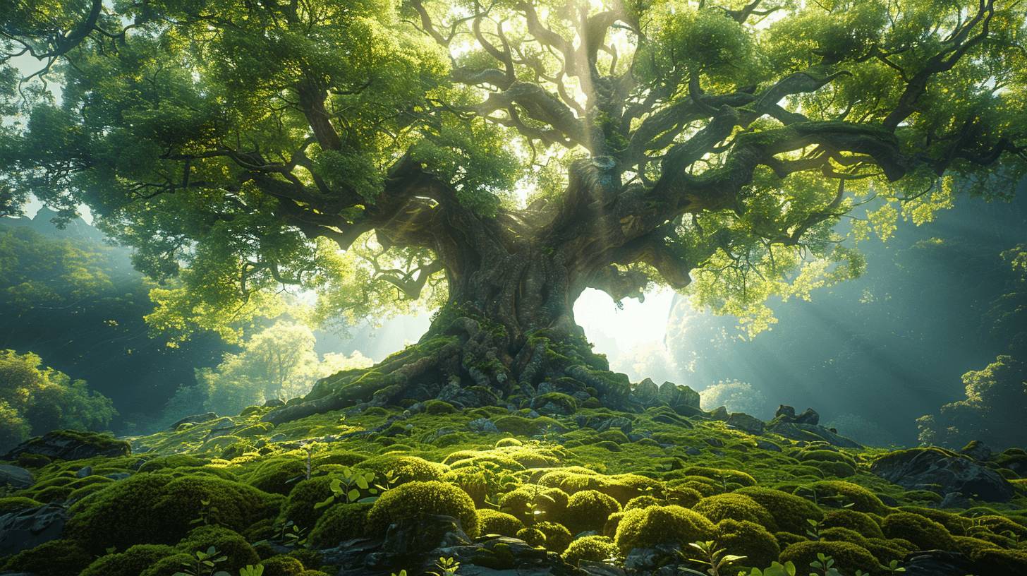 И он лишь ускорял шаг, виляя пушистым лазурным хвостиком. Наконец, спустя несколько минут пути, компания вышла на большую круглую поляну, покрытую мягким сочным мхом, похожим на огромный изумрудный ковер. В самом ее центре возвышался старый исполинский дуб с могучим стволом и раскидистыми корнями, врастающими глубоко в подстилку.