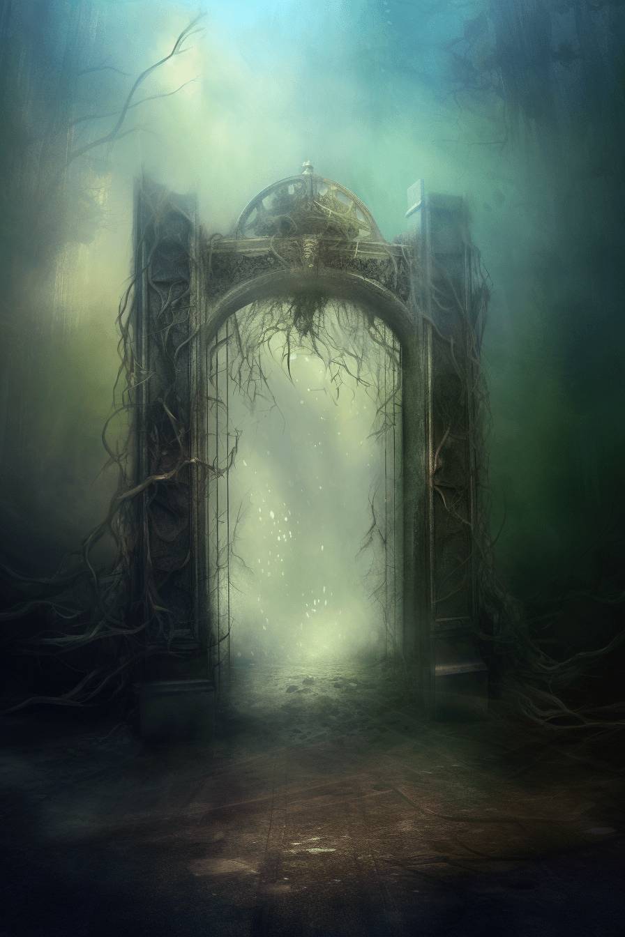Подойдя к старым разрушенным воротам, они обнаружили, что створки распахнуты настежь. Но не в соседний сквер вела эта арка, а в странный туманный коридор, сверкающий переливами радужного сияния!
