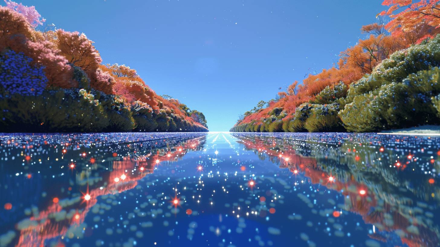 – И это радужное сияние становится настолько ярким, что озеро превращается в зеркало сказочных отражений. Каждый лепесток, каждая травинка отражается в нем и множится бесконечно. Представьте тысячи тысяч сверкающих форм, сливающихся в причудливый узор!