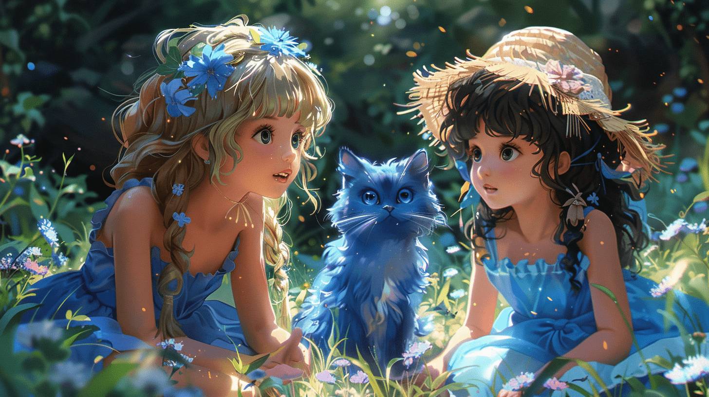 И действительно, из кустов выбрался пушистый малыш невероятного сапфирового оттенка. Его большие глаза ярко поблескивали, как два озера в солнечный полдень.