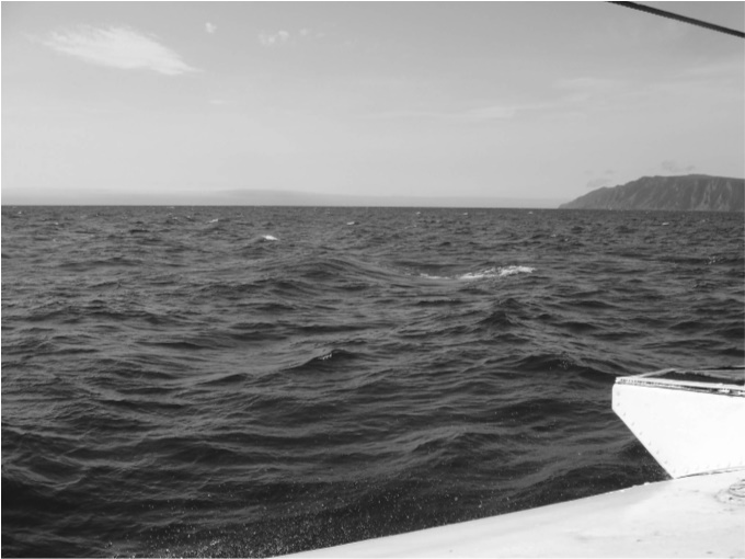 Однако до Байкала была еще чудесная и восхитительная синяя Ангара. Мы летели по ней на сверхбыстром теплоходе на подводных крыльях со скоростью 100 км в час; я сразу удачно заняла место на самом носу, рядом с турчанкой Зухал (Зохар?), фактически внутри большого стеклянного фонаря, и, глядя на чародейную панораму стремительной синей воды в дорогом багете зеленых гор, была совершенно довольна! Даже что–то напевала про баргузин и священный Байкал, и Зухар записала это на видео… НО. Там, именно в этом треугольном фонаре двойного стекла, я сильно перегрелась на солнце, оно жгло, как сквозь линзу. И я совершила непоправимый шаг: взобралась на верхнюю палубу, на корму, и встала у древка, на котором развевался триколор; просто прижалась к нему, и сила ветра – он дул в спину – была такая, что он расплел заколотую косу, волосы встали как гало вокруг головы, надулась парусом куртка, и чуть не сломалось древко вместе со мной. Очень красивая тень бежала по воде! Думаю, именно этот северный ветер, низовка сарма, и довел меня до логического завершения. Тем паче, что вслед за первым непоправимым шагом – с перегретого стеклянного бака на открытый неистовому ветру ют – я сделала точно такой же второй. Непоправимый.