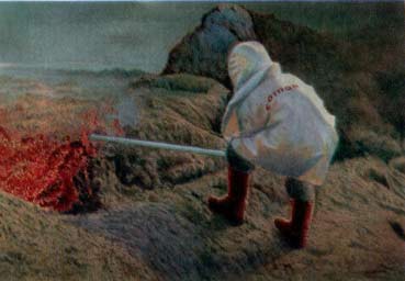 В сольфатаре Центрального кратера на Этне в 1963 году. Эльскенс, Тонани и. Шемине приготовились, чтобы взять пробы газов и других выбросов