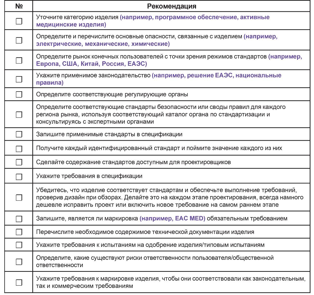 Для медицинских изделий в зависимости от стратегии регистрации могут быть применимы национальное законодательство РФ или ЕАЭС. Необходимо установить, какие правила и стандарты могут повлиять на конструкцию. В некоторых случаях подход к проектированию может диктовать, применимы ли конкретные стандарты.