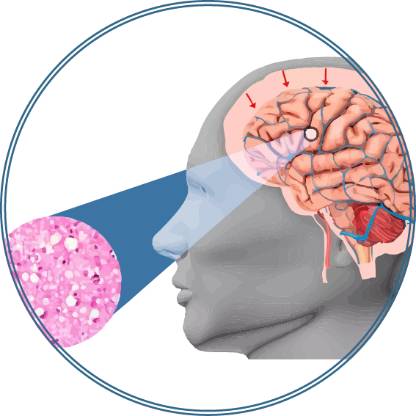В результате ряда исследований стало известно, что болезнь Крейтцфельдта-Якоба связана с проникновением в организм инфекционного белка – приона. В норме в клетках головного мозга человека содержится здоровый прион, имеющий несколько другое строение. Инфекционный прион, попадая в организм человека не разрушается, а с током крови поступает в головной мозг и откладывается на поверхности нейронов. Его взаимодействие с нормальными прионами мозговой клетки приводит к тому, что они изменяют свою структуру, постепенно трансформируясь в патогенную, подобную инфекционному приону, форму. Патогенные прионы образуют бляшки и приводят к гибели нейрона.