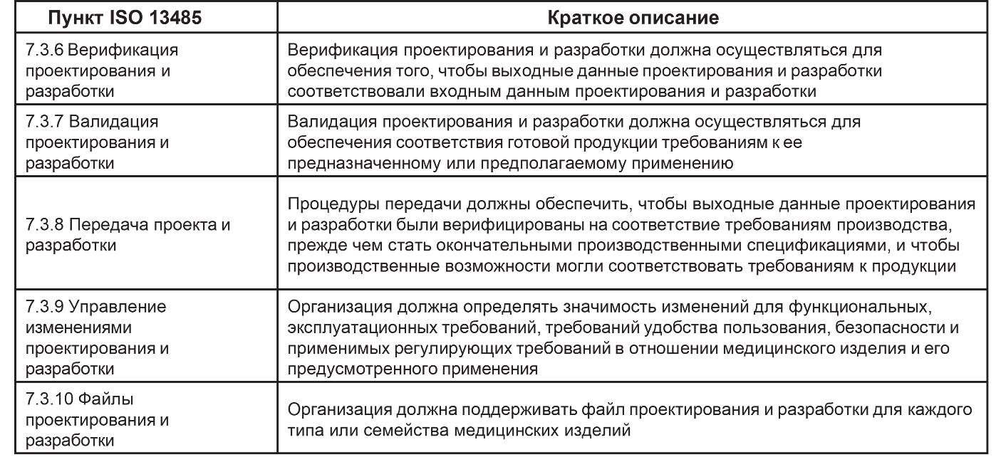 Чтобы соответствовать требованиям, указанным в пунктах 4.2.4 и 7.3.4 стандарта ISO 13485 проект необходимо верифицировать и валидировать. Верификация связана с тем, чтобы убедиться, что выходные данные проекта соответствуют входным данным. Если предусмотренное применение содержит требование, чтобы медицинское изделие было подключено или имело интерфейс для соединения с другим(и) медицинским(и) изделием(ями), верификация должна включать проверку того, что выходные данные проекта соответствуют входным данным при таком подключении или соединении через интерфейс.