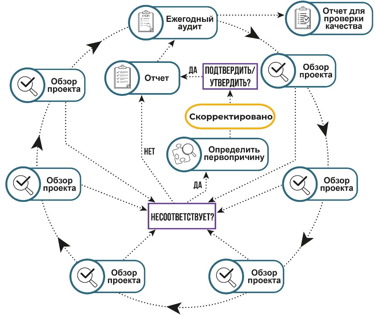 Рисунок 4.6 – Возможный цикл обзора проекта и его аудита (см. пояснения в тексте)