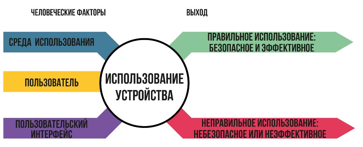 Безопасность медицинских изделий зависит от их использования по назначению, а также от надежности. Соответственно требуется, чтобы разработчики, которые занимается проектированием и оценкой медицинских изделий, учитывали человеческий фактор в своих процессах. Проще говоря, «человеческий фактор» относится к тому, как человек будет взаимодействовать с окружающими его системами, включая технологии, которые он использует. Во многом это взаимодействие будет зависеть от конструкции изделия, от того, какое образование и какую подготовку имеет пользователь, а также от среды, в которой он будет использовать технологию. Научная дисциплина человеческого фактора использует знания из самых разнообразных областей, таких как анатомия, психология, инженерия и физиология, чтобы помочь разработать продукты, которые подходят пользователю для более эффективного и безопасного применения. Человеческий фактор учитывает особенности целевой группы пользователей, такие как возраст, размер, сила, когнитивные способности и уровень подготовки. Кроме того, он принимает во внимание предполагаемую среду использования: больничные палаты, отделения интенсивной терапии, машины скорой помощи или домашние условия. Также учитываются потенциальные конкурирующие отвлекающие факторы, например, уровень освещения или срочность использования.
