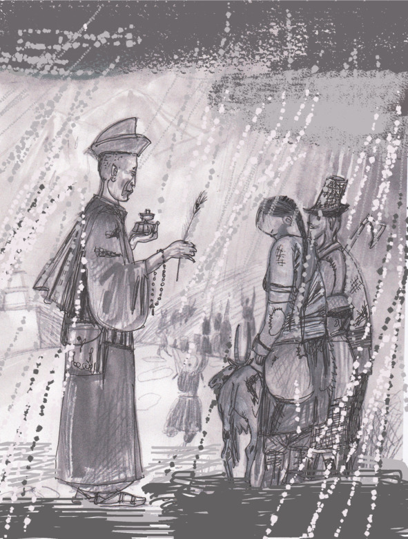 Стоило главному монаху лишь ударить в тарелки, как в небе начинали сгущаться темные облака. Потом, когда процессия монахов проходила вокруг монастыря, начинал моросить дождь. Что может быть важнее дождя для крестьянина в знойную летнюю пору? Ведь от дождя зависит, будет ли в этом году урожай, хватит ли скошенной травы для заготовки сена скотине – а значит, будет ли год сытным или голодным.