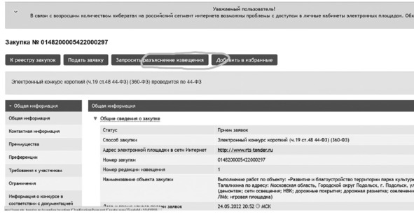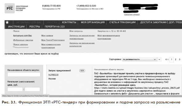Функционал ЭТП «РТС-тендер» при формировании запроса на разъяснение в качестве примера приведен на рис. 3.1.