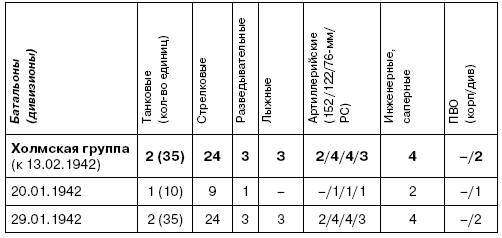 Таблица 2. Количество войск Холмской группы 3-й Ударной армии