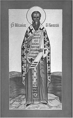 Святитель Михаил, первый митрополит Киевский, по одним летописным сообщениям, родом сириец, по другим – болгарин или серб. В 989 году он по поручению патриарха Цареградского Николая Хрисоверга прибыл из Корсуни вместе с другими священнослужителями к святому равноапостольному князю Владимиру, незадолго до этого (в 988 г.) принявшему Крещение. На долю первого митрополита Русской Церкви выпало нелегкое, но благодатное служение. Он ревностно обходил новопросвещенную Русскую землю, проповедуя Святое