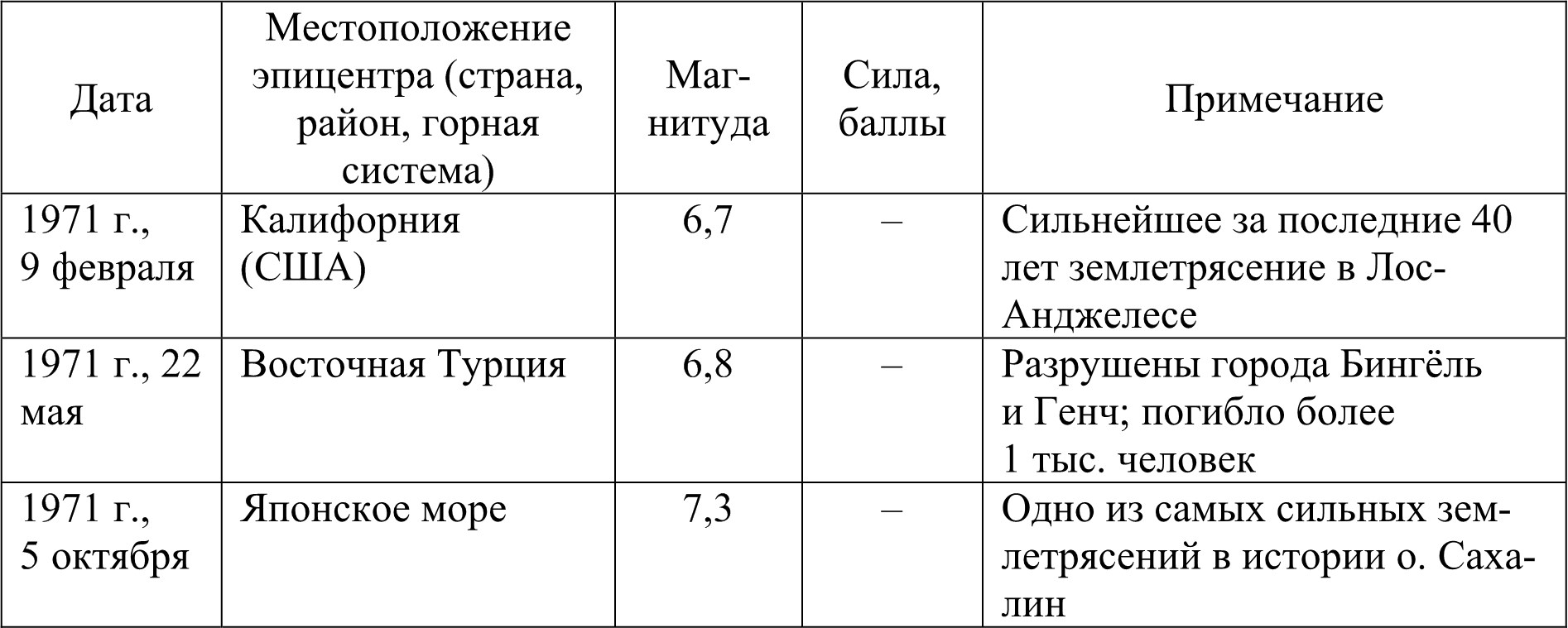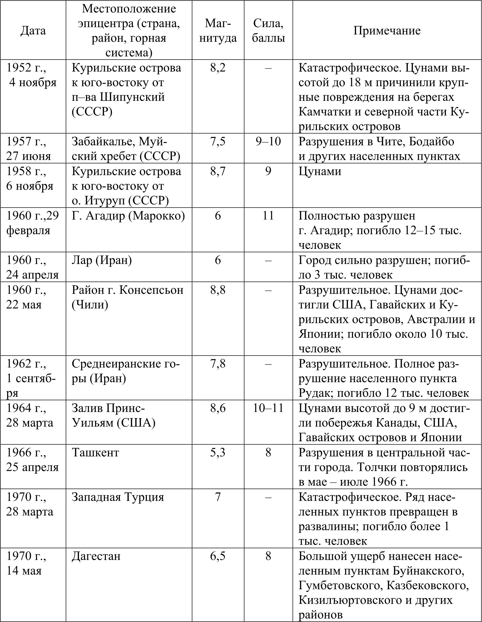 Сильнейшие землетрясения второй половины ХХ в. представлены в табл. 2.5.