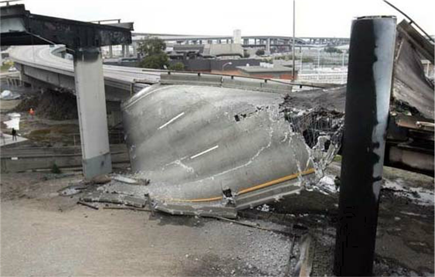 Когда на протяжении мили рухнула эстакада и упала на дорогу, проходившую под ней, погибли более ста человек. Десятки людей были погребены в своих автомобилях под многотонной тяжестью обрушившегося бетона (рис. 2.4).