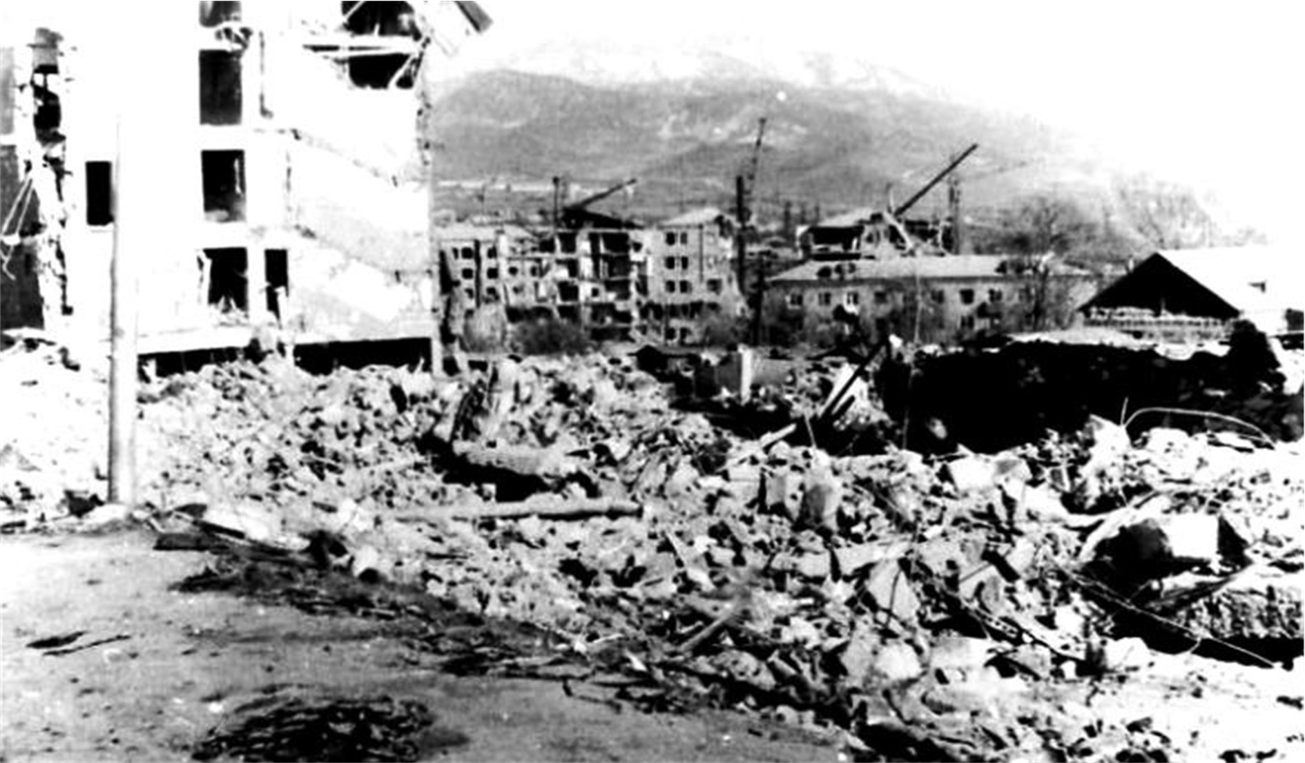 Над растерзанным Ашхабадом вставал тяжелый багровый рассвет, когда город тряхануло еще раз. Толчок был значительно слабее ночного, но оказался достаточно сильным, чтобы разрушить то, что каким-то чудом уцелело после первого. Охваченные горем и ужасом ашхабадцы увидели масштабы происшедшего уже при дневном свете… (рис. 2.7). Города, в котором еще вчера проживало около 170 тыс. человек, больше не существовало.