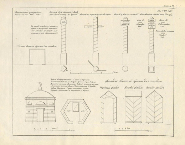 Виды дорожных столбов. 1805 г. Свод законов Российской империи. Собрание 1-е (1649—1825): Чертежи и рисунки к собранию