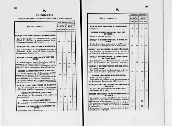 Расписание экипажам, отправляемым с почтами и пассажирами. Почтовый дорожник, 1852 г.