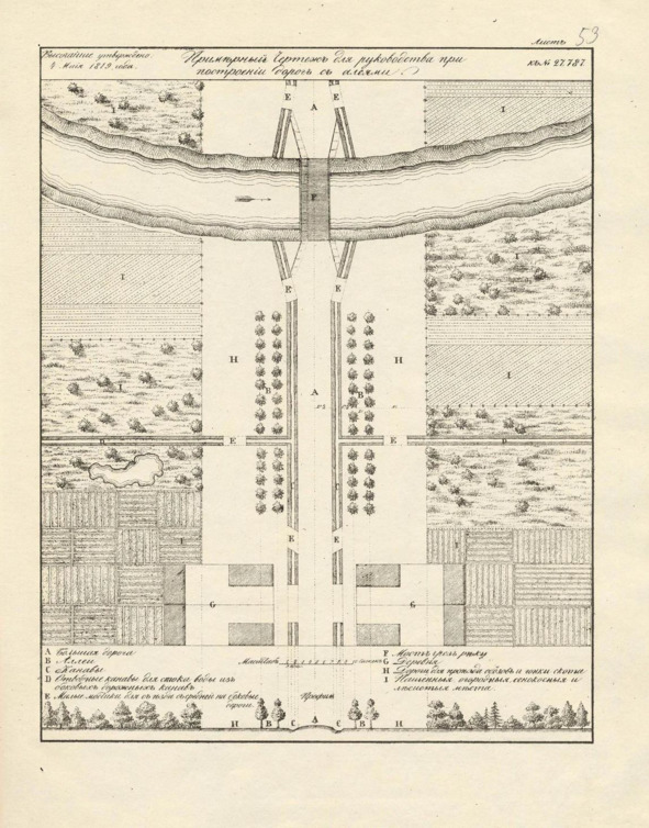 Примерный чертеж для руководства при построении дорог с аллеями. Свод законов Российской империи. Чертежи и рисунки, принадлежащие к 1-му Полному собранию законов. 1843 г.