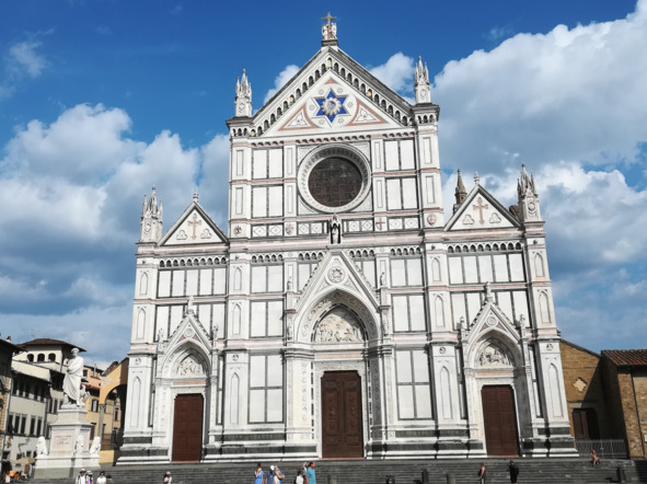 Карина с Ярославом согласились и они продолжили экскурсию. После собора и квартала Медичи они увидели квартал, где жил Данте Алигьери, музей Барджелло снаружи и место, где когда-то был римский амфитеатр. Потом они посетили церковь Санта Кроче, где похоронены Микеланджело и Галилео Галилей. Карине и Ярославу понравились монументальные надгробные памятники с аллегорическими фигурами: Живопись, Скульптура и Архитектура на могиле Микеланджело и Астрономия с Геометрией над захоронением Галилея. Кроме того, в этой церкви оказались похоронены Никколо Макиавелли с аллегорической фигурой Политики на саркофаге, Джоаккино Россини с фигурой музыки, Михаил Огинский с его портретным бюстом, Лоренцо и Витторио Гиберти с простой могильной плитой на полу.