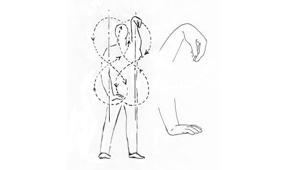 Задача – научиться выполнять движения описывающие восьмерку расслабленно. Критерием правильности является то, что в течение длительного времени можно выполнять это движение без особенного напряжения мышц. Важно расслабить кисть. Принципиальными являются два момента: локоть должен быть слегка прижат к ребрам, то есть локоть совершает минимальные движения. А кисть совершает максимальные движения.