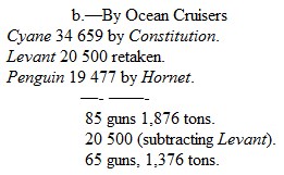 During the year 1812 to 1815 inclusive, there were eight actions between French and English ships of approximately equal force. In three of these the English were victorious.