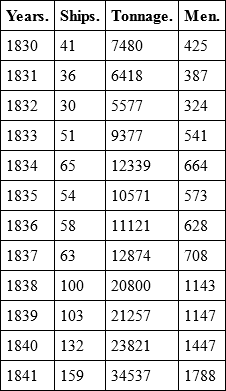 How much this extensive trade has increased since the establishment of the independence of Monte Video, will be seen from the following statement of the increase of British shipping from 1830 to 1842: —
