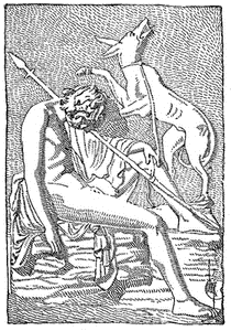 One day, having repaired to a valley inclosed by cypresses and pines, where gushed a fountain of sparkling water, the chaste Diana handed her javelin, her quiver, and her bow to one nymph, her robe to another, while a third unbound the sandals from her feet. Then Crocale, the most skillful of them, arranged her hair, and Nephele, Hyale, and the rest drew water in capacious urns. While the huntress queen was thus employed in the labors of the toilet, Actæon, the son of Autonoë and Aristæus, having quitted his companions of the chase and rambling without any especial object, came to the place, led thither by his destiny. As he presented himself at the entrance of the cave, the nymphs, seeing a man, screamed and rushed towards the goddess to hide her with their bodies. But she was taller than the rest and overtopped them all by a head. Such a color as tinges the clouds at sunset or at dawn came over the countenance of Diana, thus taken by surprise. Surrounded as she was by her nymphs, she yet turned half away and sought with a sudden impulse for her arrows. As they were not at hand, she dashed the water into the face of the intruder, saying, "Now go and tell, if you can, that you have seen Diana unappareled." Immediately a pair of branching stag's horns grew out of the huntsman's head, his neck gained in length, his ears grew sharp-pointed, his hands became feet, his arms, his long legs, and his body were covered with a hairy spotted hide. Fear took the place of his former boldness, and the hero fled. What should he do? – go home to the palace or lie hid in the woods? While he hesitated his dogs saw him. Over rocks and cliffs, through mountain gorges that seemed impracticable, he fled, and they followed. The air resounded with the bark of the dogs. Presently one fastened on his back, another seized his shoulder; the rest of the pack came up and buried their teeth in his flesh. His friends and fellow-huntsmen cheered on the dogs, and, looking everywhere for Actæon, called on him to join the sport. At the sound of his name, he turned his head and heard them regret that he should be away. He earnestly wished he was. But Diana had no pity for him, nor was her anger appeased till the dogs had torn his life out.