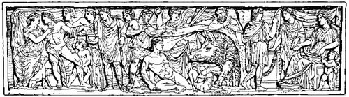 On gold sand impearledWith lily shells and pebbles milky white,Poor Cynthia greeted him, and soothed her lightAgainst his pallid face: he felt the charmTo breathlessness, and suddenly a warmOf his heart's blood: 'twas very sweet; he stayedHis wandering steps, and half-entrancèd laidHis head upon a tuft of straggling weeds,To taste the gentle moon, and freshening beads,Lashed from the crystal roof by fishes' tails.And so he kept, until the rosy veils,Mantling the east, by Aurora's peering handWere lifted from the water's breast, and fannedInto sweet air; and sobered morning cameMeekly through billows: – when like taper-flameLeft sudden by a dallying breath of air,He rose in silence, and once more 'gan fareAlong his fated way.12299. Myths of Venus. Round the goddess of love cluster romances of her own tender passion, of the affairs of the winged Cupid, and of the loves of the worshipers at her shrine. Of the affection of Venus for Mars and of her relations with Anchises,123 the father of Æneas, mention is elsewhere made. The following is the myth of Venus and Adonis.