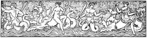 I plunged for life or death. To interknitOne's senses with so dense a breathing stuffMight seem a work of pain; so not enoughCan I admire how crystal-smooth it felt,And buoyant round my limbs. At first I dweltWhole days and days in sheer astonishment;Forgetful utterly of self-intent,Moving but with the mighty ebb and flow.Then like a new-fledged bird that first doth showHis spreaded feathers to the morrow chill,I tried in fear the pinions of my will.'Twas freedom! and at once I visitedThe ceaseless wonders of this ocean bed.187He became guardian of fishes and divers and of those who go down to the sea in ships. Later, being infatuated of the fair virgin Scylla (daughter of the sea-god Phorcys and granddaughter of Pontus), he paid his court to her, but the maiden rejected him. Whereupon, in desperation, Glaucus sought the aid of Circe, an enchantress. She, because she coveted for herself the handsome sea-green god, transformed her rival into a monster hideously fashioned of serpents and barking dogs.188 In this shape Scylla thereafter infested the shore of Sicily and worked evil to mariners,189 till finally she was petrified as a reef, none the less perilous to all seafarers.