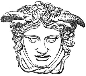 This was Medusa. Her, while she was praying the gods to end her misery, or, as some say, while she was sleeping, Perseus approached, and, guided by her image reflected in the bright shield which he bore, cut off her head, and so ended her miserable existence. Thus are described the horror and the grace of her features in death: