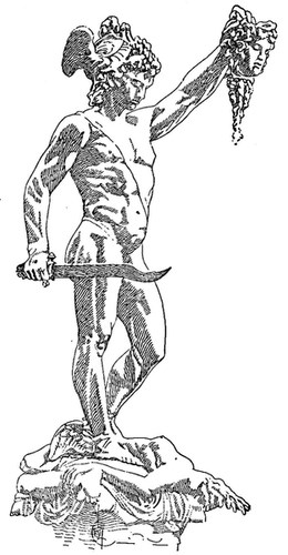 Snatching the eye, Perseus compelled the Grææ, as the price of its restoration, to tell him how he might obtain the helmet of Hades that renders its wearer invisible, and the winged shoes and pouch that were necessary. With this outfit, to which Minerva added her shield and Mercury his knife, Perseus sped to the hall of the Gorgons. In silence sat two of the sisters, —