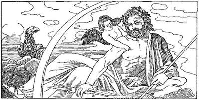 3. Origin of the World. 2 There were among the Greeks several accounts of the beginning of things. Homer tells us that River Ocean, a deep and mighty flood, encircling land and sea like a serpent with its tail in its mouth, was the source of all. According to other myths Night and Darkness were the prime elements of Nature, and from them sprang Light. Still a third theory, attributed to Orpheus, asserts that Time was in the beginning, but had himself no beginning; that from him proceeded Chaos, a yawning abyss wherein brooded Night and Mist and fiery air, or Æther; that Time caused the mist to spin round the central fiery air till the mass, assuming the form of a huge world egg, flew, by reason of its rapid rotation, into halves. Of these, one was Heaven, the other Earth. From the center of the egg proceeded Eros (Love) and other wondrous beings.