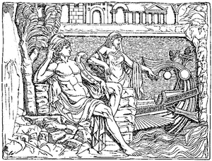 227. Helen, Menelaüs, and Agamemnon. On the fall of Troy, Menelaüs recovered possession of his wife, who, it seems, had not ceased to love him, though she had yielded to the might of Venus and deserted him for another.323 After the death of Paris, she aided the Greeks secretly on several occasions: in particular when Ulysses and Diomede entered the city in disguise to carry off the Palladium. She then saw and recognized Ulysses, but kept the secret and even assisted them in obtaining the image. Thus she became reconciled to Menelaüs, and they were among the first to leave the shores of Troy for their native land. But having incurred the displeasure of the gods, they were driven by storms from shore to shore of the Mediterranean, visiting Cyprus, Phœnicia, and Egypt. In Egypt they were kindly treated and presented with rich gifts, of which Helen's share was a golden spindle and a basket on wheels.