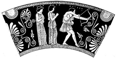 Penelope was one of those mythic heroines whose beauties were not those of person only, but of character and conduct as well. She was the niece of Tyndareus, – being the daughter of his brother Icarius, a Spartan prince. Ulysses, seeking her in marriage, had won her over all competitors. But, when the moment came for the bride to leave her father's house, Icarius, unable to bear the thoughts of parting with his daughter, tried to persuade her to remain with him and not accompany her husband to Ithaca. Ulysses gave Penelope her choice, to stay or go with him. Penelope made no reply, but dropped her veil over her face. Icarius urged her no further, but when she was gone erected a statue to Modesty on the spot where they had parted.