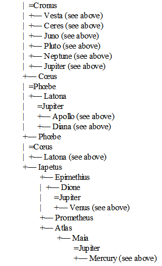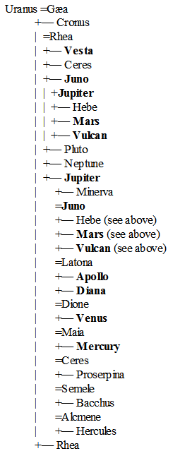 22. In the following genealogical table (A), the names of the great gods of Olympus are printed in heavy-face type. Latin forms of names or Latin substitutes are used.