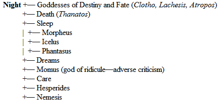 The following table is based upon Hesiod's account of The Family of Night. (Theogony.)