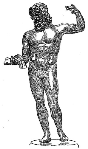 Jove said, and nodded with his shadowy brows;Waved on th' immortal head th' ambrosial locks, —And all Olympus trembled at his nod.23Unfortunately, our knowledge of this famous statue is confined to literary descriptions, and to copies on coins. Other representations of Jove have been obtained from Greek bronze statuettes, or the wall-paintings of Herculaneum and Pompeii.