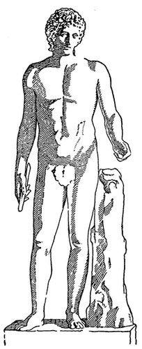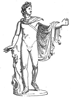 30. Apollo, or Phœbus Apollo, the son of Jupiter and Latona, was preëminently the god of the sun. His name Phœbus signifies the radiant nature of the sunlight; his name Apollo, perhaps, the cruel and destructive heat of noonday. Soon after his birth, Jupiter would have sent him to Delphi to inculcate righteousness and justice among the Greeks; but the golden god Apollo chose first to spend a year in the land of the Hyperboreans, where for six continuous months of the year there is sunshine and spring, soft climate, profusion of herbs and flowers, and the very ecstasy of life. During this delay the Delphians sang pæans, – hymns of praise, – and danced in chorus about the tripod (or three-legged stool), where the expectant priestess of Apollo had taken her seat. At last, when the year was warm, came the god in his chariot drawn by swans, – heralded by songs of springtide, of nightingales and swallows and crickets. Then the crystal fount of Castalia and the stream Cephissus overflowed their bounds, and mankind made grateful offerings to the god. But his advent was not altogether peaceful. An enormous serpent, Python, had crept forth from the slime with which, after the flood, the Earth was covered; and in the caves of Mount Parnassus this terror of the people lurked. Him Apollo encountered and after fearful combat slew, with arrows, weapons which the god of the silver bow had not before used against any but feeble animals, – hares, wild goats, and such game. In commemoration of this illustrious conquest, he instituted the Pythian games, in which the victor in feats of strength, swiftness of foot, or in the chariot race, should be crowned with a wreath of beech leaves. Apollo brought not only the warm spring and summer, but also the blessings of the harvest. He warded off the dangers and diseases of summer and autumn; and he healed the sick. He was patron of music and of poetry. Through his oracle at Delphi, on the slopes of Parnassus in Phocis, the Pythian god made known the future to those who consulted him. He was a founder of cities, a promoter of colonization, a giver of good laws, the ideal of fair and manly youth, – a pure and just god, requiring clean hands and pure hearts of those that worshiped him. But though a god of life and peace, the far-darter did not shun the weapons of war. When presumption was to be punished, or wrong righted, he could bend his bow and slay with the arrows of his sunlight. As in the days of his youth he slew the Python, so, also, he slew the froward Tityus, and so the children of Niobe. While Phœbus Apollo is the Olympian divinity of the sun, fraught with light and healing, spiritual, creative, and prophetic, he must not be confounded with a god of the older dynasty, Helios (offspring of Hyperion, Titanic deity of light), who represented the sun in its daily and yearly course, in its physical rather than spiritual manifestation. The bow of Apollo was bound with laurel in memory of Daphne, whom he loved. To him were sacred, also, many creatures, – the wolf, the roe, the mouse, the he-goat, the ram, the dolphin, and the swan.30