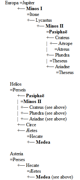 163-167. For the descent of Jason from Deucalion, see Table G. Iolcos: a town in Thessaly. Lemnos: in the Ægean, near Tenedos. Phineus: a son of Agenor, or of Poseidon. For the family of Medea, see Table H.