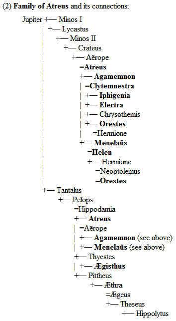 196. Iphigenia and Agamemnon. Sometimes, in accordance with Goethe's practice, the name Tauris is given to the land of the Tauri. To be correct one should say, "Iphigenia among the Tauri," or "Taurians." (See Index.) Iphigenia and Agamemnon by W. S. Landor; also his Shades of Agamemnon and Iphigenia; Dryden, Cymon and Iphigenia; Richard Garnett, Iphigenia in Delphi; Sir Edwin Arnold, Iphigenia; W. B. Scott, Iphigenia at Aulis. Any translations of Goethe's Iphigenia in Tauris, and of Euripides' Iphigenia in Aulis and Among the Tauri; also of Æschylus' Agamemnon, – such as those by Milman, Anna Swanwick, Plumptre, E. A. Morshead, J. S. Blackie, E. Fitzgerald, and Robert Browning. For Agamemnon, see Shakespeare, Troilus and Cressida, I, iii; II, i, iii; III, iii; IV, v; V, i; and James Thomson, Agamemnon (a drama). The Troilus and Cressida story is not found in Greek and Latin classics. Shakespeare follows Chaucer's Troilus and Criseyde, which is based upon the Filostrato and the Filocolo of Boccaccio. Pandarus: the character of this name, uncle of Cressida, to be found in Lydgate, Chaucer's Troilus and Criseyde, and Shakespeare's play of the same title, enjoys an unsavory reputation for which medieval romance is responsible. On Menelaüs, see notes to Helen and Agamemnon.
