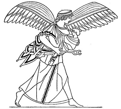 10. Helios, Selene, and Eos, children of the Titan Hyperion. Helios and Selene were the more ancient Greek divinities of Sun and Moon respectively. Helios, the charioteer of the sun, is, as has been already said, frequently identified with his successor, Apollo. The attributes and adventures of Selene were merged in those of the more modern Diana. Eos, or, in Latin nomenclature, Aurora, the rosy-fingered goddess of the Morn, was mother of the stars and of the morning and evening breezes. Saffron-robed she rises from the streams of Ocean, to bring light to gods and men.