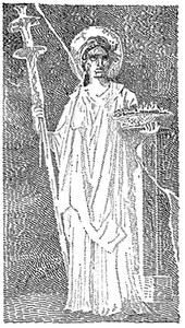 40. Ceres (Demeter), the goddess of sowing and reaping, of harvest festivals, and of agriculture in general, was sister of Jupiter and daughter of Cronus and Rhea. She is connected through her daughter Proserpine, queen of Hades, with the holy ceremonies and rites of death and of the lower world. Of the institutions founded or favored by her the most important were the mysteries celebrated at Eleusis, concerning which we know that, in the presence of individuals initiated in the secret ritual and perhaps with their coöperation, scenes were enacted which represented the alternation of death and life in nature and, apparently, forecast the resurrection and immortality of man. Sacred to Ceres and to Proserpine were golden sheaves of corn and soporific poppies; while, among animals, cows, sheep, and pigs were acceptable to them.