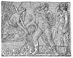 The Dawn, the Sun, and the Moon were supposed to rise out of Ocean on the eastern side and to drive through the air, giving light to gods and men. The stars, also, except those forming the Wain or Bear and others near them, rose out of and sank into the stream of Ocean. There the sun-god embarked in a winged boat, which conveyed him by the northern part of the earth back to his place of rising in the east.