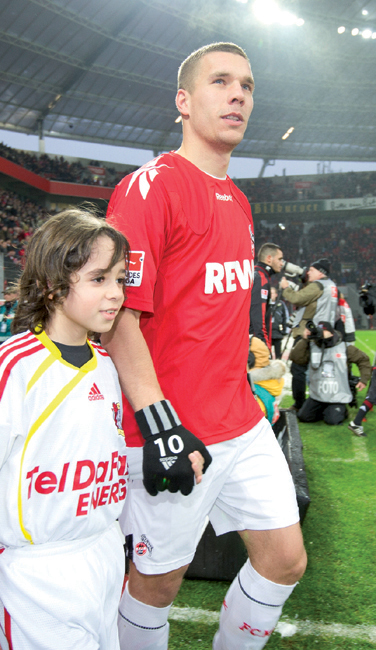 Ein Traum wird wahr: Ein Jugendspieler darf mit seinem Vorbild zusammen einlaufen.