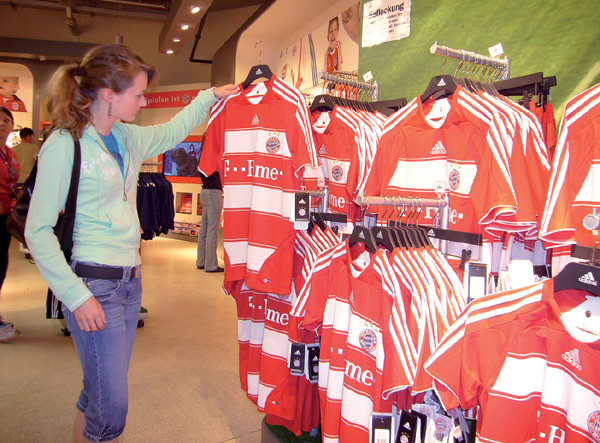 Selbst im fernen Asien trifft man nicht selten auf jugendliche Spieler mit häufig gefälschten Trikots, beispielsweise des FC Bayern. Noch beliebter sind Trikots englischer Teams wie Manchester United aus Liverpool oder von Arsenal London. Die englischen Vereine bei der weltweiten Vermarktung führend. Nicht ohne Grund unternimmt der FC Bayern München fast jährlich Reisen nach Asien oder in die Vereinigten Arabischen Emirate, um die eigene Marke international zu platzieren und um durch Merchandising höhere Erlöse zu erzielen. Deutschland befindet sich nach England und Spanien an der dritten Stelle der europäischen Rangliste – gemessen am Merchandising-Umsatz.